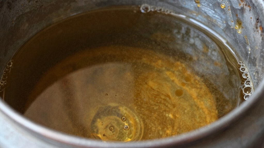 Recognizing early signs of gear oil oxidation is essential to prevent equipment damage and costly repairs. One of the first indicators is oil discoloration; over time, the oil may turn darker or develop a cloudy appearance, signaling chemical changes. You might also notice a viscosity change—if the oil becomes thinner or thicker than normal, it indicates degradation. These signs suggest the oil is losing its protective properties, increasing friction and wear on gears. Regularly inspecting oil samples for color and consistency helps catch oxidation early. Additionally, protective gear coatings can help minimize exposure to harmful contaminants that accelerate oxidation. Proper maintenance practices are vital to extend the lifespan of gear oil and prevent early failure. Monitoring oil condition through routine checks and testing can help detect early oxidation signs before serious damage occurs. Staying vigilant about oil condition is key to maintaining your machinery’s longevity and ideal performance.