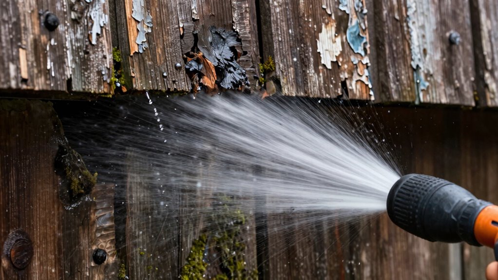 Improper pressure settings during power washing can force water into hidden gaps and wall cavities that would otherwise stay dry. Using too high a pressure or incorrect nozzle selection can cause water to penetrate areas you didn’t intend to reach. When pressure settings are too aggressive, the force can breach seals and push water through small cracks. Choosing the wrong nozzle, such as a narrow spray tip, increases the risk of damaging surfaces and forcing water into unseen spaces. Be mindful of these factors to prevent water from sneaking into walls or gaps. Consider these tips: