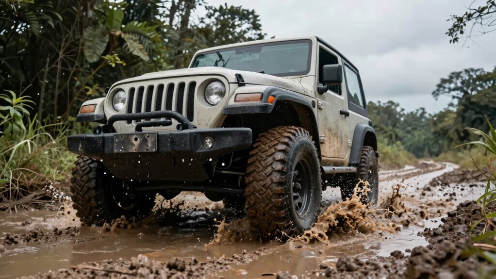 Prevention is like tightening a zip tie—small adjustments make a big difference. Regular vehicle maintenance helps guarantee your seal integrity stays intact and drainage systems function properly, reducing water entry risks during off-roading. Check and replace worn seals, clean drainage channels, and inspect door and window seals regularly. By doing so, you minimize the chance of water ingress, keeping your vehicle dry and protected even in challenging off-road conditions.