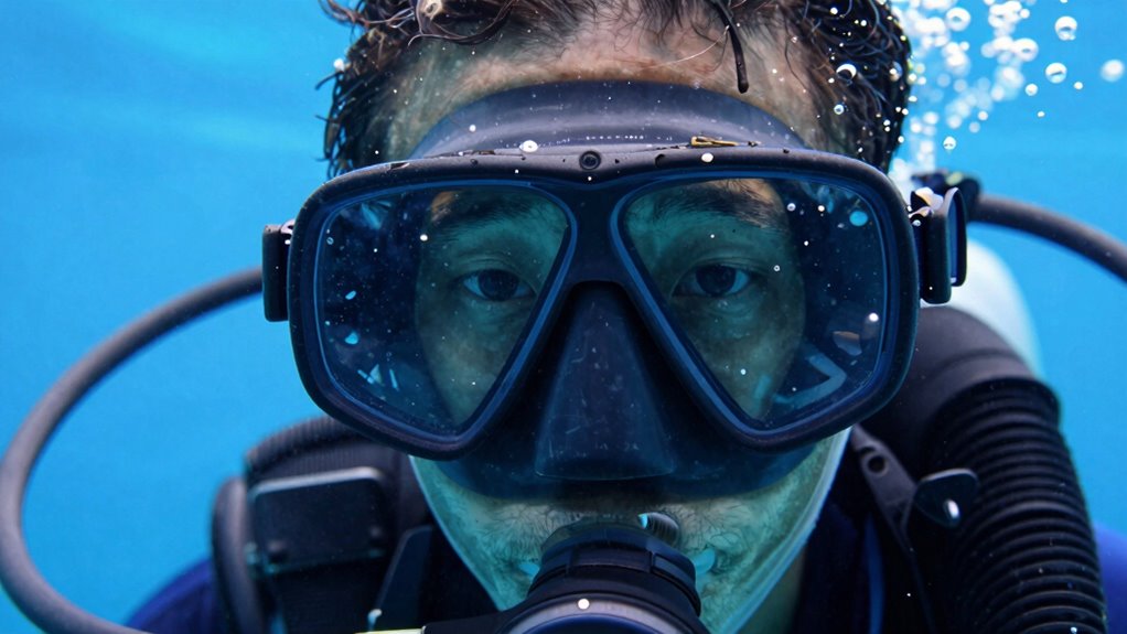 You can tell if your breather is submerged by checking its orientation and placement accuracy. If it’s tilted or positioned low in the water, it’s likely underwater. Look for water ingress or bubbles escaping from the outlet; these signs indicate submersion. Always verify your breather’s proper placement and orientation, keeping it upright and above water, to prevent it from sucking in water, which can cause operational issues.