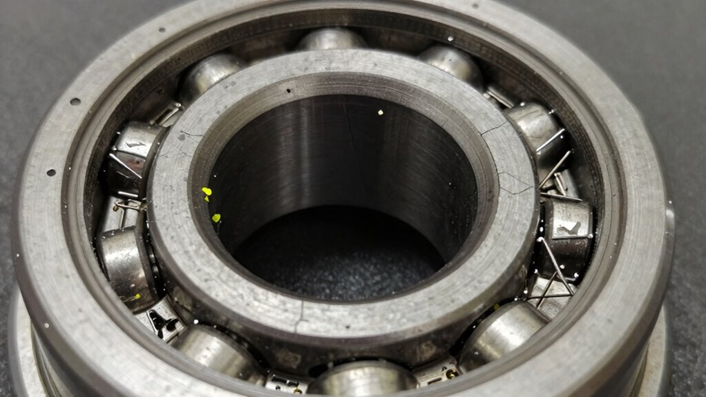 Have you ever wondered what causes bearing cage failures and how they impact machinery performance? One often overlooked factor is the combination of lubrication challenges and material fatigue. When bearings operate under demanding conditions, inadequate lubrication can lead to increased friction and heat, accelerating wear on the cage. Without proper lubrication, the cage can experience uneven stress distribution, making it more prone to cracking or fracturing over time. This deterioration might not happen suddenly; instead, it develops gradually, often going unnoticed until a failure occurs. Material fatigue also plays a pivotal role. Repeated stress cycles weaken the cage’s structural integrity, especially if the material isn’t chosen or treated properly. Over time, microscopic cracks form and propagate, causing the cage to become brittle and more susceptible to breakage. These issues often go hand in hand. Poor lubrication exacerbates the effects of material fatigue, accelerating failure rates. If you overlook lubrication challenges, you might not realize how quickly the cage can deteriorate, especially under high loads or rapid rotation speeds. The cage’s role is essential—it keeps rolling elements in position and ensures smooth rotation. When it fails, the consequences can be severe: increased vibration, noise, and ultimately, machinery downtime. Often, people focus on the bearing balls or rollers, neglecting the cage’s health, but a compromised cage can lead to catastrophic failures. Recognizing early signs of material fatigue, such as small cracks or discoloration, can help prevent sudden breakdowns. Proper lubrication practices, including using the right type of lubricant and maintaining correct application intervals, are fundamental in mitigating these issues. Additionally, selecting cage materials with high fatigue resistance and suitable properties for the operating environment can greatly extend bearing life. Regular inspections and monitoring for early signs of wear or fatigue can save you money and reduce unplanned downtime. Making sure that lubrication challenges are addressed effectively—by avoiding contamination, using appropriate lubricants, and maintaining correct lubrication schedules—supports the cage’s longevity. Remember, the failure mode people often miss isn’t just a simple breakage; it’s the slow, progressive damage caused by material fatigue compounded by lubrication issues. When these factors align, the cage becomes vulnerable to cracks and fractures that compromise the entire bearing assembly. By paying close attention to lubrication practices and understanding material fatigue’s role, you can prevent a lot of avoidable failures. Additionally, understanding the exfoliation of dead skin cells can help in maintaining cleaner, healthier surfaces in bearing environments. Taking proactive steps to manage these challenges not only improves machinery reliability but also enhances overall operational efficiency.