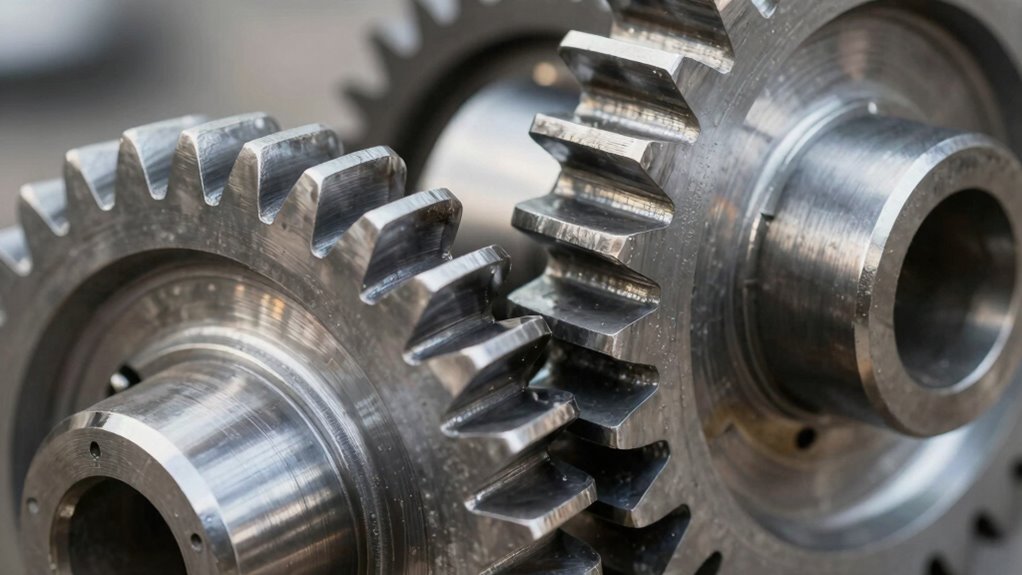 Your gear material substantially impacts noise levels and noise reduction. Softer materials like plastics tend to produce less noise, making them ideal for quieter operations. On the other hand, metals like steel generate more noise but offer durability. Choosing the right gear material balances noise reduction with strength, ensuring your gears operate smoothly and last long without causing excessive noise that could disrupt your environment.