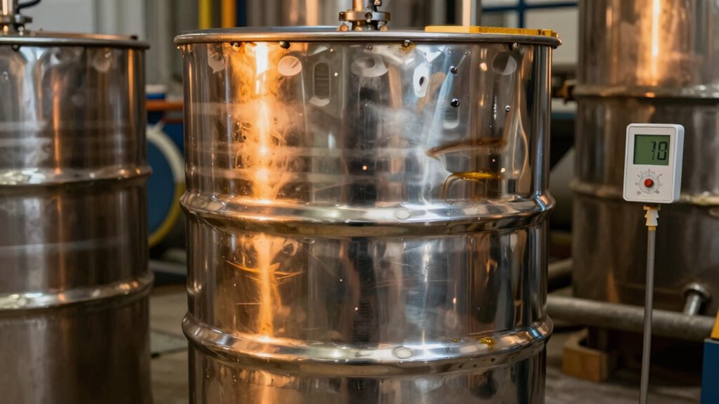Accurate temperature measurement is essential for maintaining ideal heating conditions in drums containing thick oils. Precise readings help prevent overheating, which can cause excessive thermal expansion, or underheating, hindering viscosity reduction. To guarantee reliability: