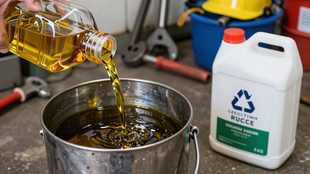 Remember, properly disposing of old oil helps protect the environment, as over 17 million gallons of used oil are improperly dumped each year. By recycling your oil at authorized centers, you prevent harmful pollutants from contaminating water sources and harming wildlife. Handling your used oil responsibly isn’t just good for the planet—it’s a simple step you can take today to make a real difference. Stay mindful, dispose of wisely, and keep our environment clean for future generations.