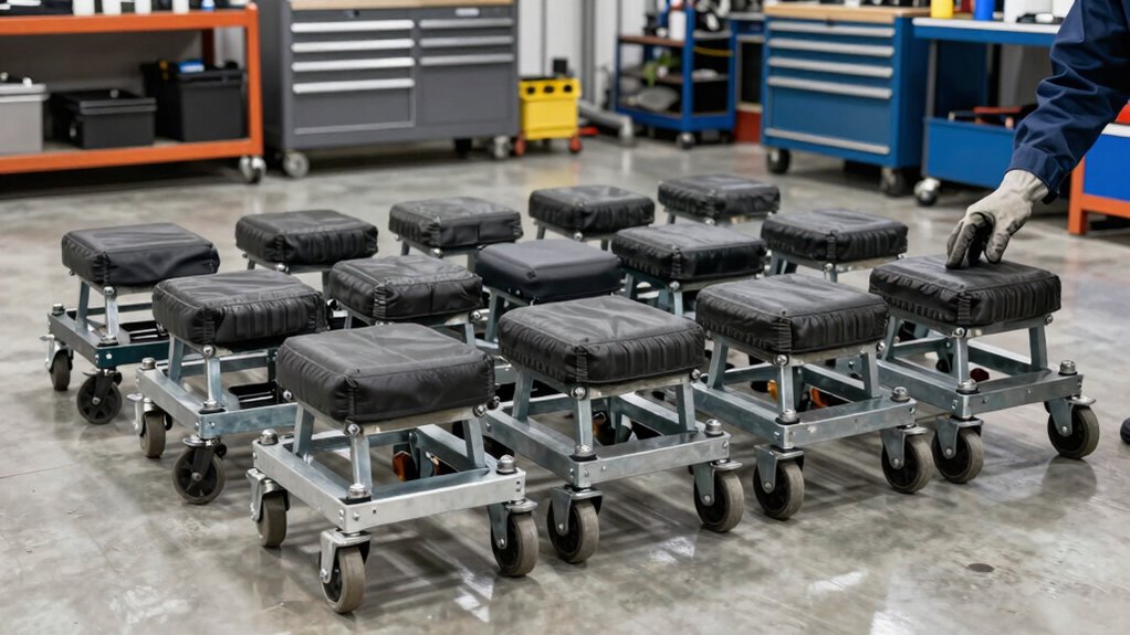 When evaluating heavy-duty creepers, comfort and support often determine how long I can work without feeling exhausted or strained. Thick padding on the seat and backrest is essential for maximum cushioning during long hours. Supportive features like lumbar support and ergonomic contours help reduce lower back fatigue and strain. Adjustable headrests and reclining positions allow me to customize my comfort and maintain proper posture under the vehicle. I also look for a sturdy frame with reinforced construction, ensuring stability even when supporting loads over 450 pounds. Cushioned surfaces made from durable, oil-resistant materials make cleaning easy and help maintain comfort over time. Prioritizing these features makes a big difference in my productivity and reduces discomfort during extended mechanic sessions.