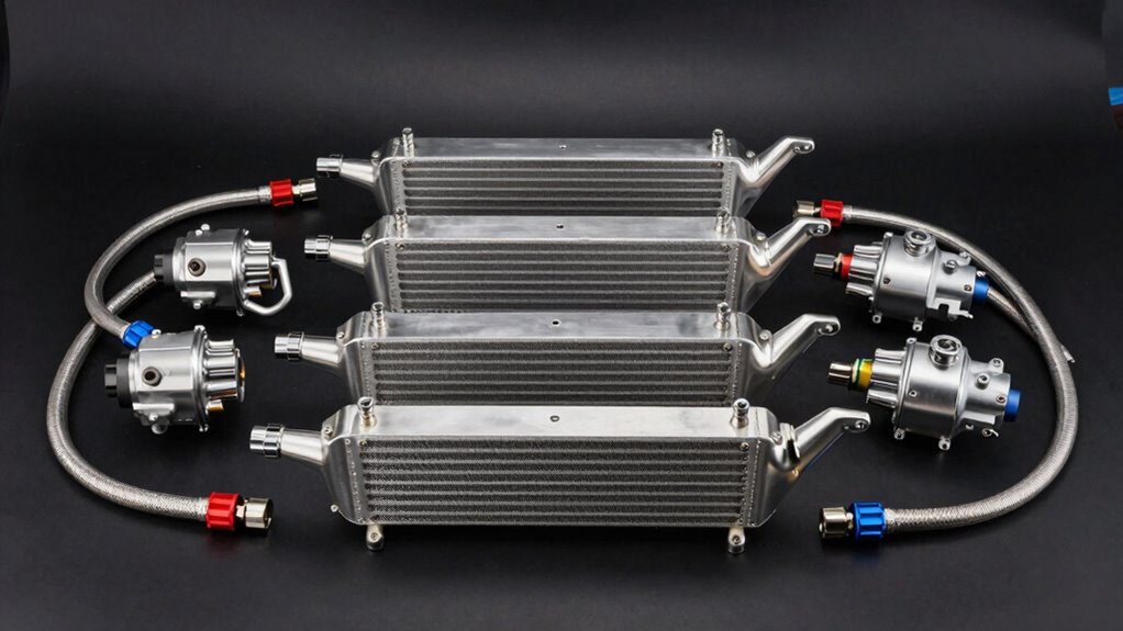 Are you aware of the extra accessories needed to guarantee a smooth installation of your differential oil cooler heat exchanger kit? Many kits don’t include everything you need, so check which components are included. You might need additional fittings like adapters, hoses, or mounting brackets to ascertain everything fits properly. Extra clamps or brackets are often necessary to secure hoses and prevent leaks under high pressure, especially during demanding operation. Depending on your vehicle, specific size fittings or connectors not included in the basic kit may be required. It’s also wise to have compatible sealants or thread tape on hand to create leak-proof connections. Being prepared with these accessories ensures a hassle-free setup and reliable performance.