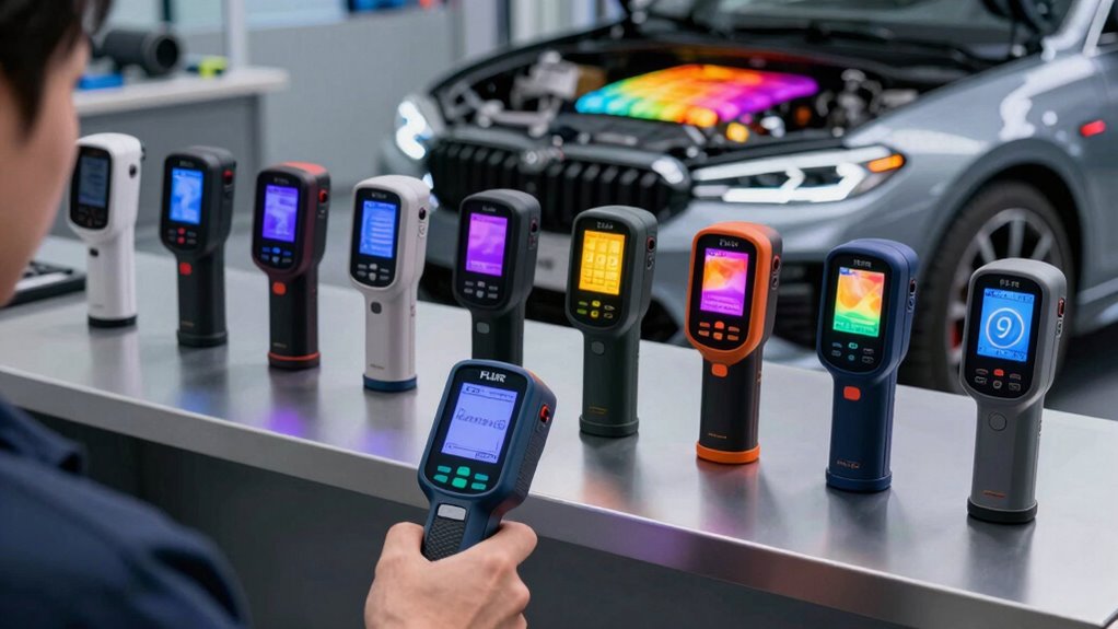 Just like Sherlock Holmes relying on his trusty magnifying glass, choosing the right FLIR thermal camera can unseal hidden clues in your automotive diagnostics. Whether you’re inspecting engines or electrical systems, these tools reveal what’s invisible to the naked eye. By selecting the perfect camera, you’ll be well on your way to solving mysteries faster and more accurately—making every repair feel like a case closed. Ready to see the unseen?