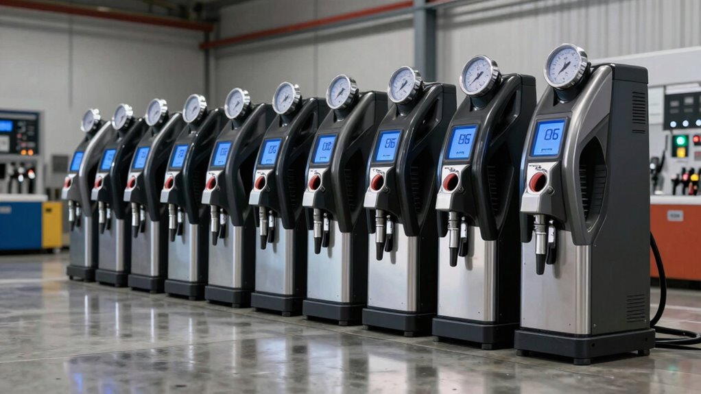 If you’re looking for the 15 best gear oil dispensers with digital meters in 2026, I’ve got you covered. These models combine high accuracy, durable materials, and easy-to-use interfaces, helping you dispense gear oils efficiently and precisely. From heavy-duty transfer pumps to versatile nozzle systems, there’s an option for every application. Keep going to explore detailed features and make an informed choice that fits your needs perfectly.