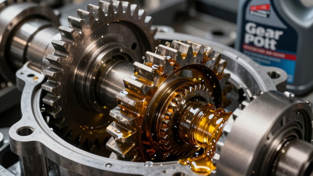 When selecting gear oil for limited slip chattering issues, paying attention to additive composition is essential because it directly impacts how well the oil reduces noise and smooths operation. High-quality additive formulations contain advanced friction modifiers that effectively cut down clutch chatter without harming seals or metal parts. I look for synthetic-based additives, as they offer more consistent performance and better thermal stability than mineral options. Balanced additive packages are critical to guarantee compatibility with different gear oils and prevent chemical reactions that could cause issues. Anti-wear and extreme pressure agents bolster gear protection and extend the oil’s lifespan. Manufacturers’ formulations tested rigorously tend to deliver superior friction control and noise reduction, making them a smarter choice for fixing limited slip chatter.