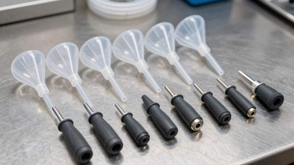 Ever wondered if these funnel kits come with safety features? Yes, many include spill-proof designs, secure fittings, and flexible hoses to prevent messes and accidental leaks. Some kits have locking mechanisms to guarantee a tight seal, reducing the risk of spills during use. I always look for these features because safety matters when working with lubricants. Don’t you agree that protecting your workspace and yourself is just as important as getting the job done?