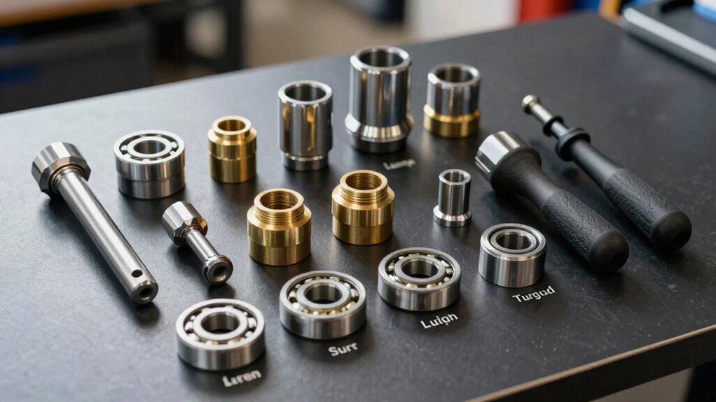 The durability of a hub bearing press kit hinges on the quality of its materials, making it essential to select tools crafted from strong, long-lasting substances like heat-treated stainless steel or carbon steel. These materials can withstand the high pressures involved in pressing operations without deforming or breaking. Additionally, corrosion-resistant coatings such as black oxide or anodic oxidation protect the tools from rust and environmental damage, extending their lifespan. Precision manufacturing ensures tight tolerances and reliable fitment of press components, further boosting durability. Investing in tools made from durable materials not only guarantees long-term performance but also reduces the need for frequent replacements. Ultimately, choosing a kit with high-quality, resilient materials guarantees consistent, reliable work and better value over time.