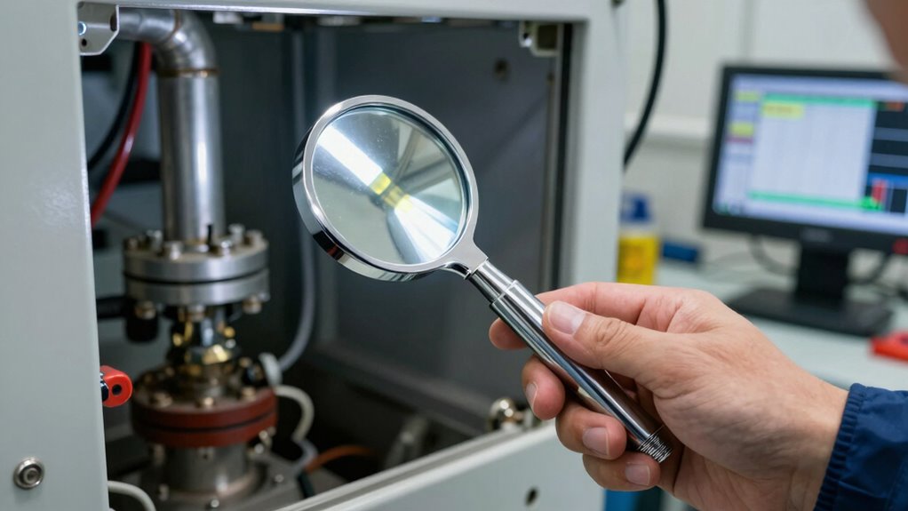 When selecting an inspection mirror kit for leak hunting, I focus on several key factors to guarantee effectiveness. I consider the durability and material quality for long-lasting use, along with adjustable length and lighting features to enhance visibility in tight or poorly lit spaces. Additionally, I weigh portability and maneuverability to make sure the kit fits my specific needs and works comfortably in different scenarios.