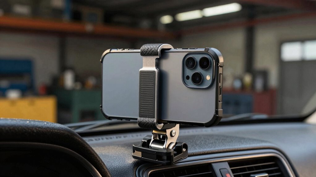 No matter which mount you choose, imagine your phone snugly secured amidst busy workshop chaos—vibrations, dust, and unpredictable movements. Each of these rugged options promises to keep your device safe, so you can focus on the task at hand without worry. With a reliable mount, your phone becomes an extension of your tools—ready and accessible whenever you need it. Stay confident, stay connected, and keep working smoothly, no matter how tough the shop gets.