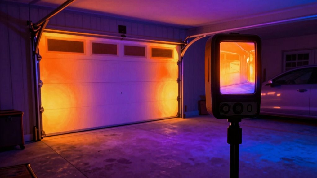 The ideal temperature range for garage inspections typically falls between -20°C to 150°C (-4°F to 302°F). I recommend this span because it helps you spot both cold and hot spots efficiently. When I inspect, I look for temperature differences that indicate issues like insulation problems or electrical faults. Staying within this range guarantees you catch potential problems early before they become costly or dangerous.